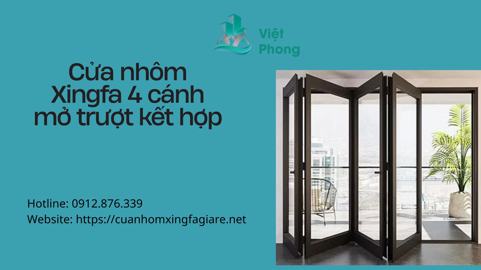Việt Phong một địa chỉ cung cấp cửa nhôm xingfa 4 cánh hiện đại, chất lượng. Sản phẩm tại Việt Phong sử dụng nhôm xingfa chính hãng, kết hợp kính cường lực an toàn và hệ phụ kiện đồng bộ, giúp cửa luôn chắc chắn, vận hành êm ái và bền đẹp theo thời gian. Để biết thêm các thông tin chi tiết về sản phẩm hãy liên hệ ngay cho chúng tôi theo số hotline 0912.876.339 để được tư vấn.